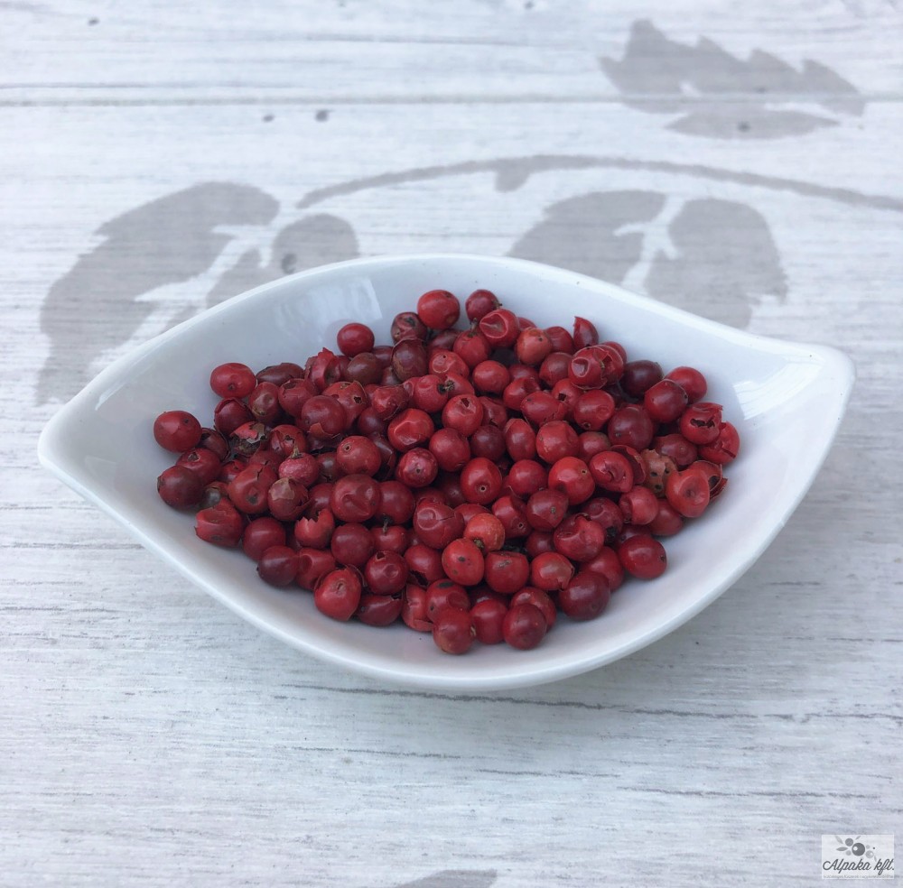 Pink pepper conquers with its beautiful color, its aroma is typically sweet. Its pungent, peppery aroma can only be sensed if it is crushed or ground a little and it also appears in its aftertaste.